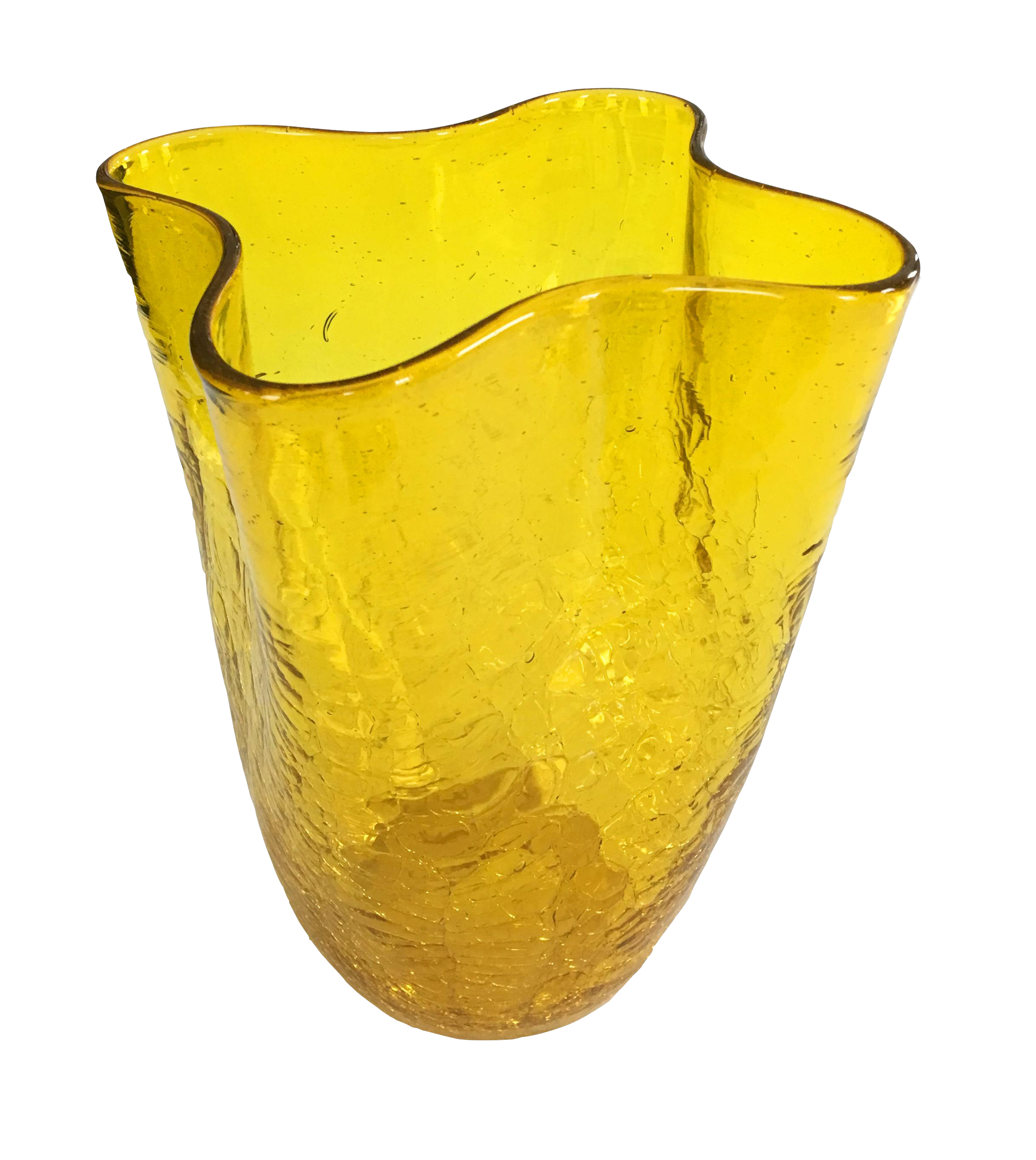 1954 Blenko Glass Company Item 404s Golden Yellow Crackled Glass Fluted Vase Chairish