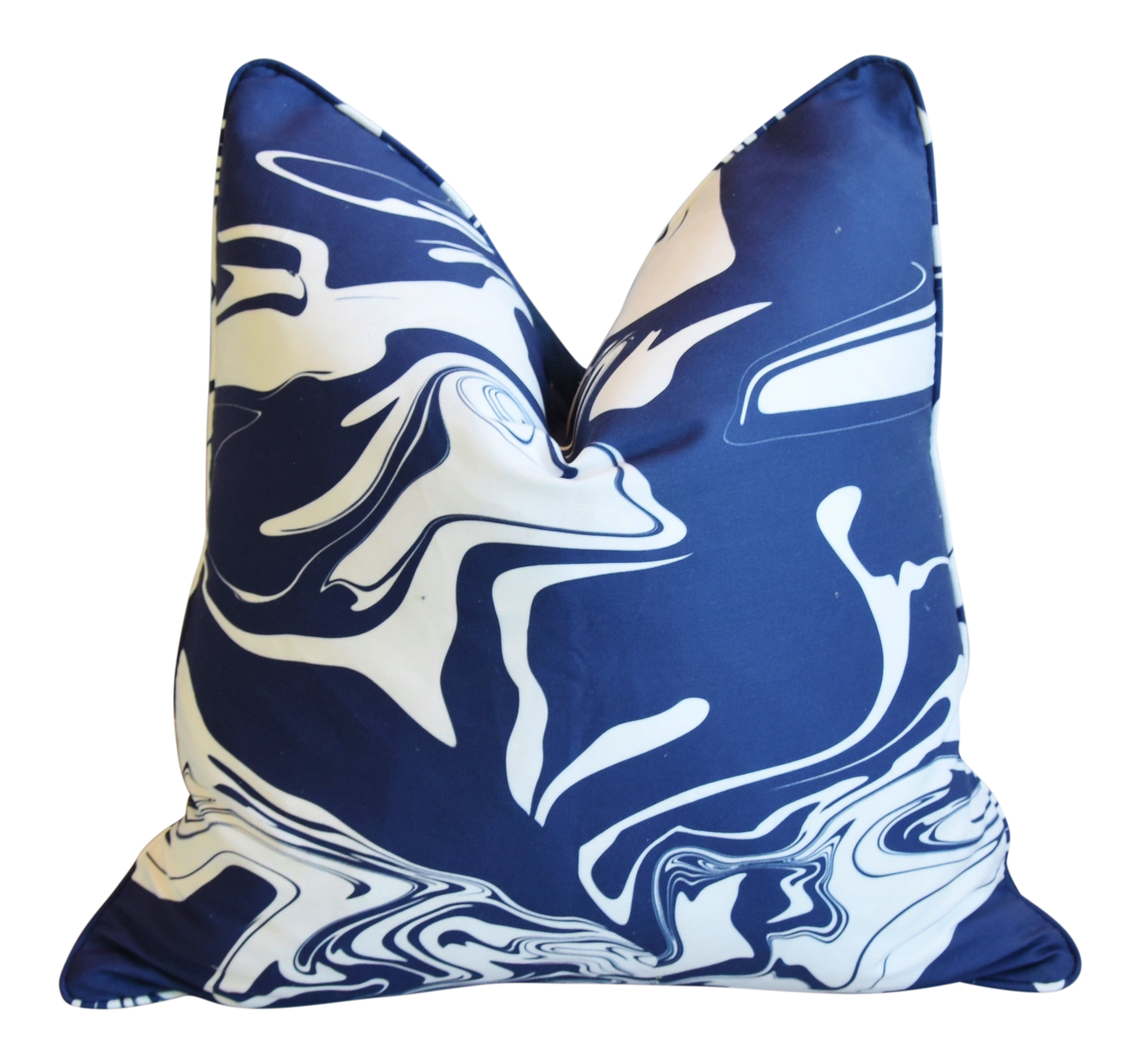 Modern Blue White Marbleized Velvet Feather Down Pillow 22 Square Chairish