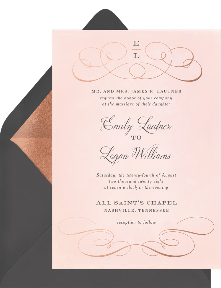 Rose Gold Flourish Invitations In Pink Greenvelope Com