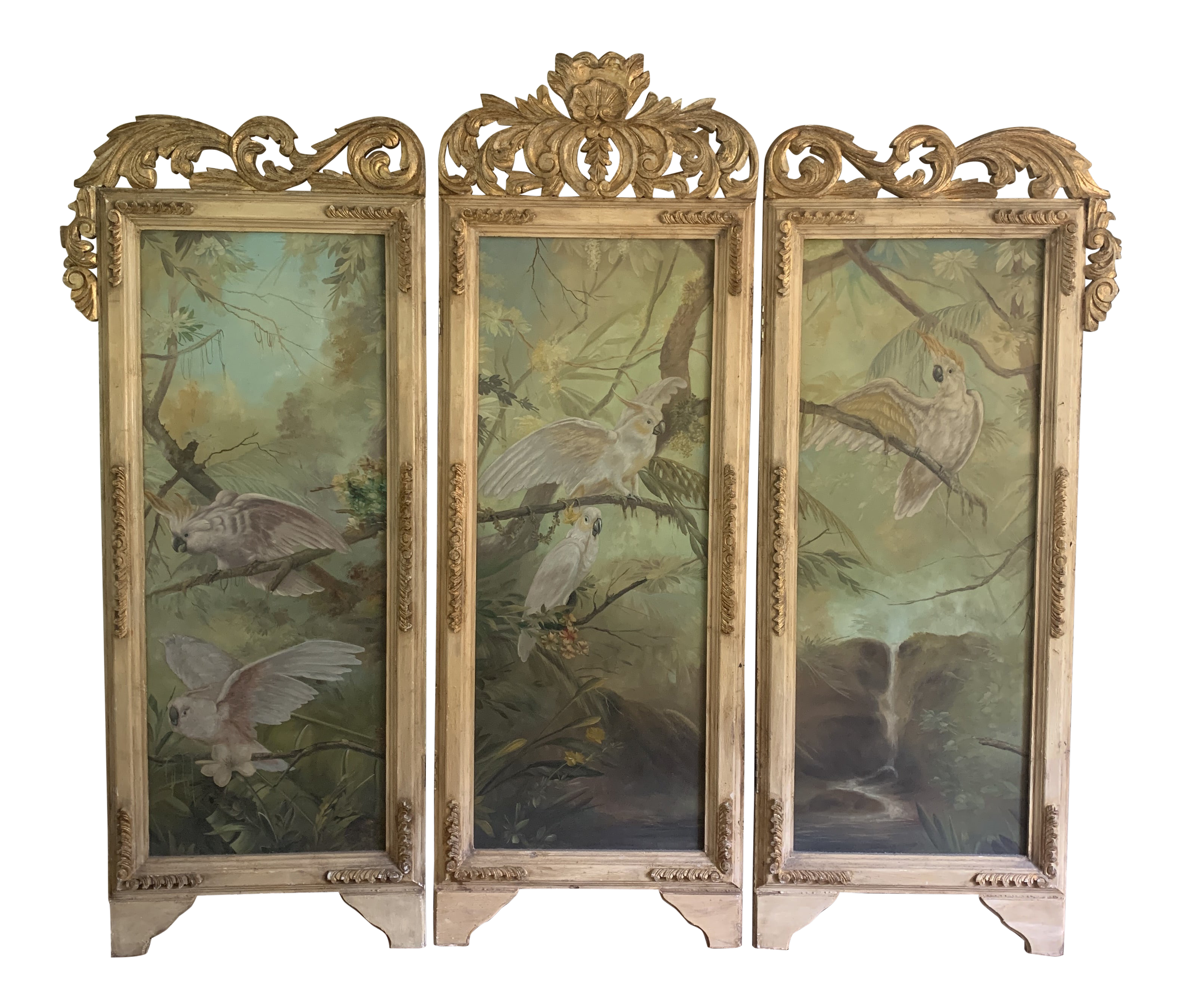 Mexican San Miguel De Allende Handpainted Cockatiel Tryptic Panels Painted Screen Chairish
